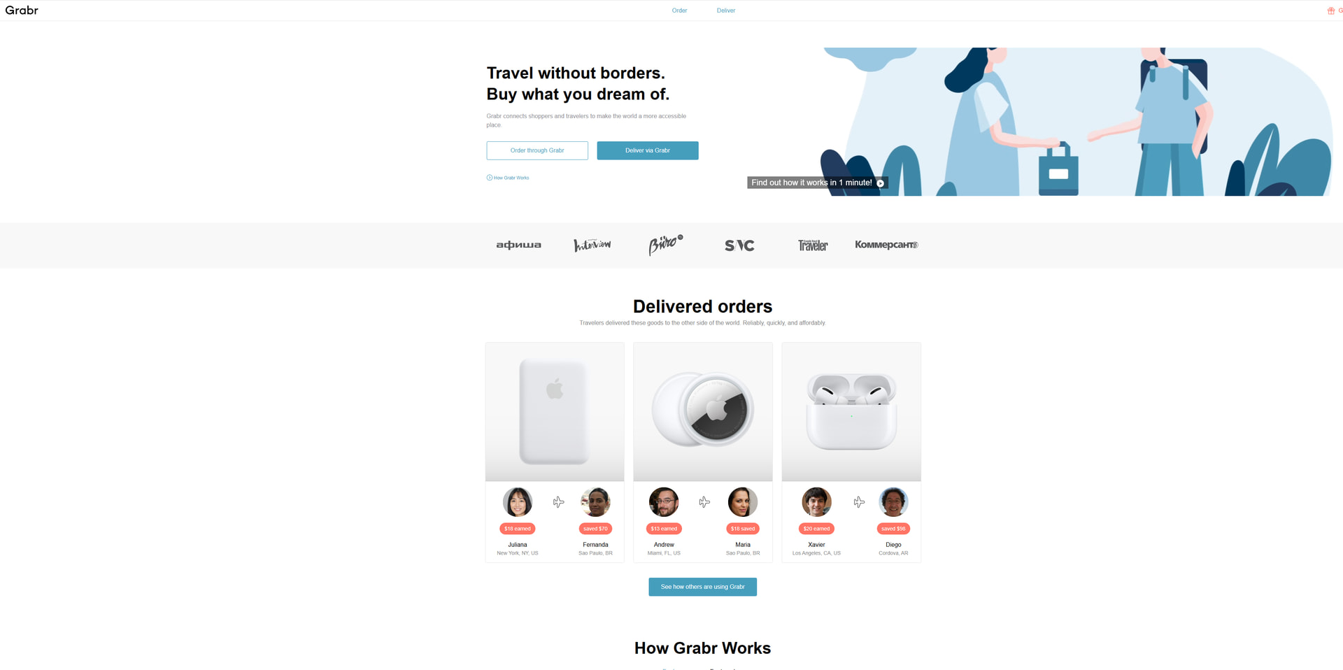 Grabr β a global marketplace where people request products from international stores, and travelers earn money by buying and delivering them. Someone in Brazil wants a specific product only available in the US? You buy it, bring it in your suitcase, and get paid for the delivery.