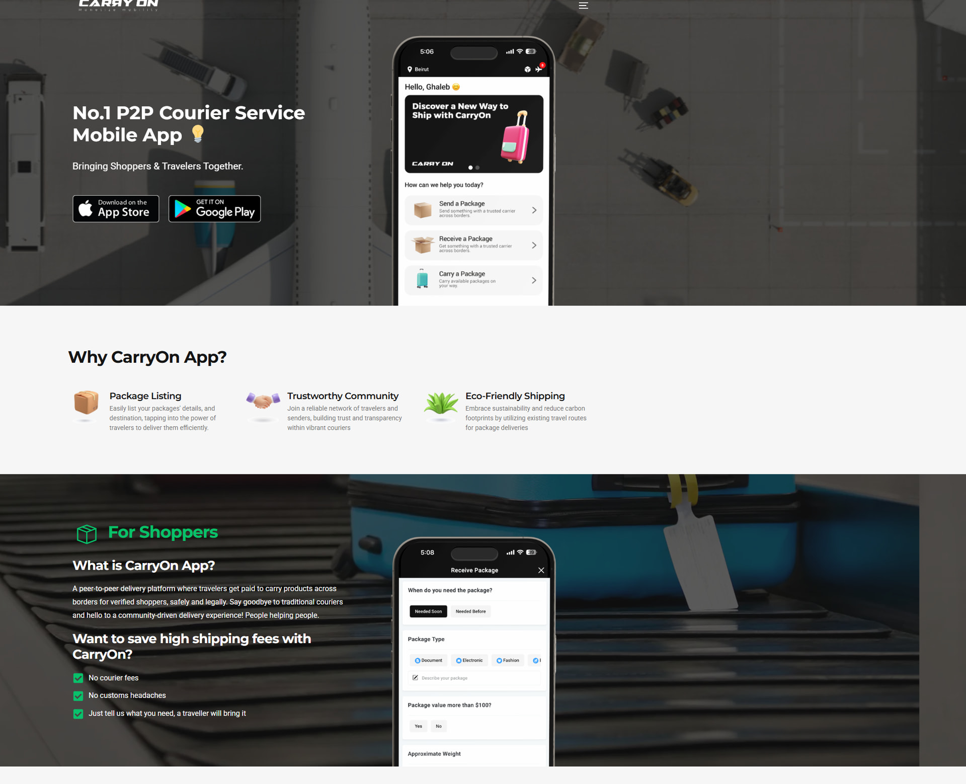 CarryOn β same concept, different community. Shoppers post what they want from abroad, and travelers heading that direction earn money by carrying and delivering the items.