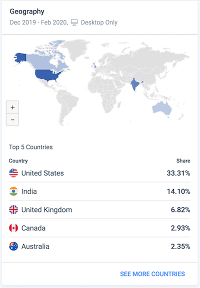 And as you scroll down you’ll be able to see what countries the visitors are coming from.