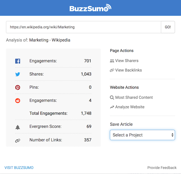 You can even see all the most popular articles from that website based on social sharing and backlink count.