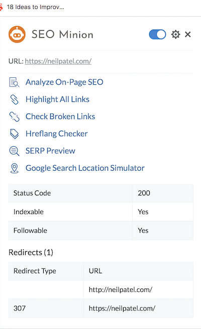 One task that I have my team constantly look at through SEO Minion is broken links.