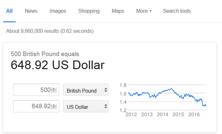 3. For currency conversions, use the Google search bar instead of a calculator.