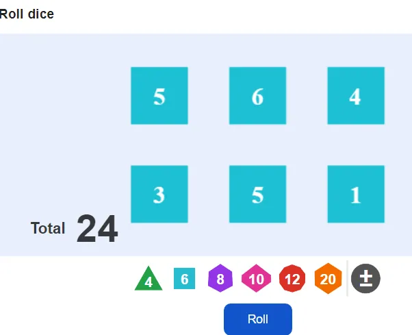 Type Roll Dice into Google and press search to get an advanced dice rolling tool. You are given the tools to add as many dice to your roll as possible, as well as 4, 6, 8, 10, 12, and 20 sided dice. You can also add a value directly to your dice roll and when you press the roll button you’ll see the overall value immediately.