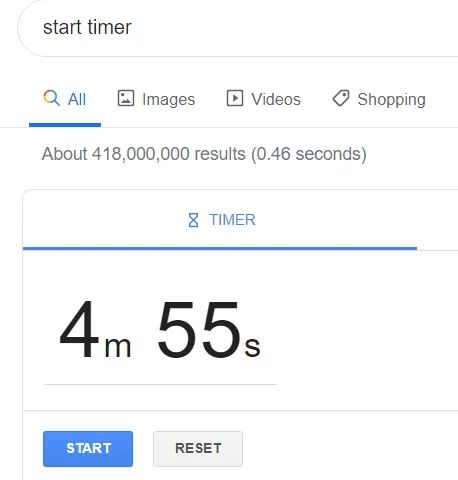 Search for start timer and you’ll be given a Google search feature that can create a timer or a stopwatch. With the timer, you can set your own time and a sound will play once the timer hits zero.