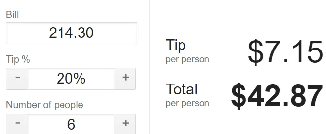 If you want to split the tip between a group, you can also add more people and the calculator will tell you the amount needed per person.