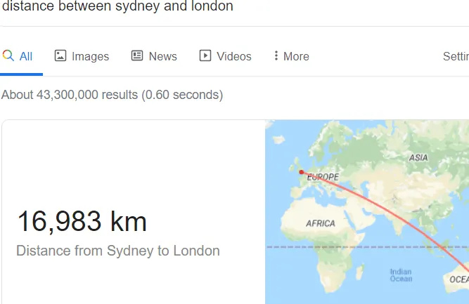 If you’re using this Google search feature for mere curiosity, try this – distance between location A and Location B and Google will tell you how many miles or kilometers are between two points of the Earth.