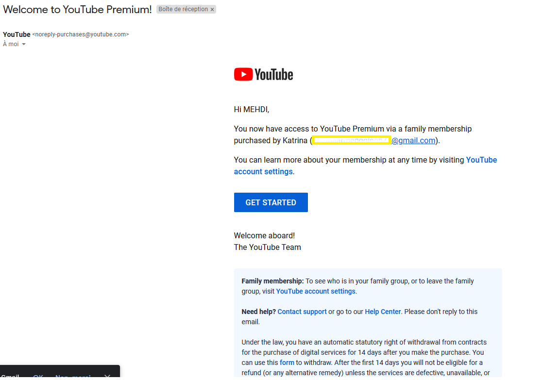 First of all, it works, you will get an invitation to join someone else’s family with a premium YT account.