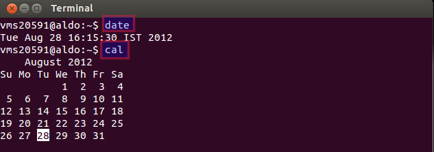 Date and cal commands displays the current date,time and the calender.