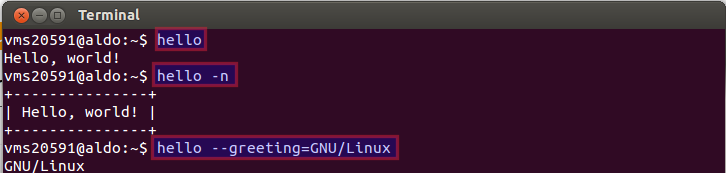 hellohello -nhello βgreeting=GNU/Linux