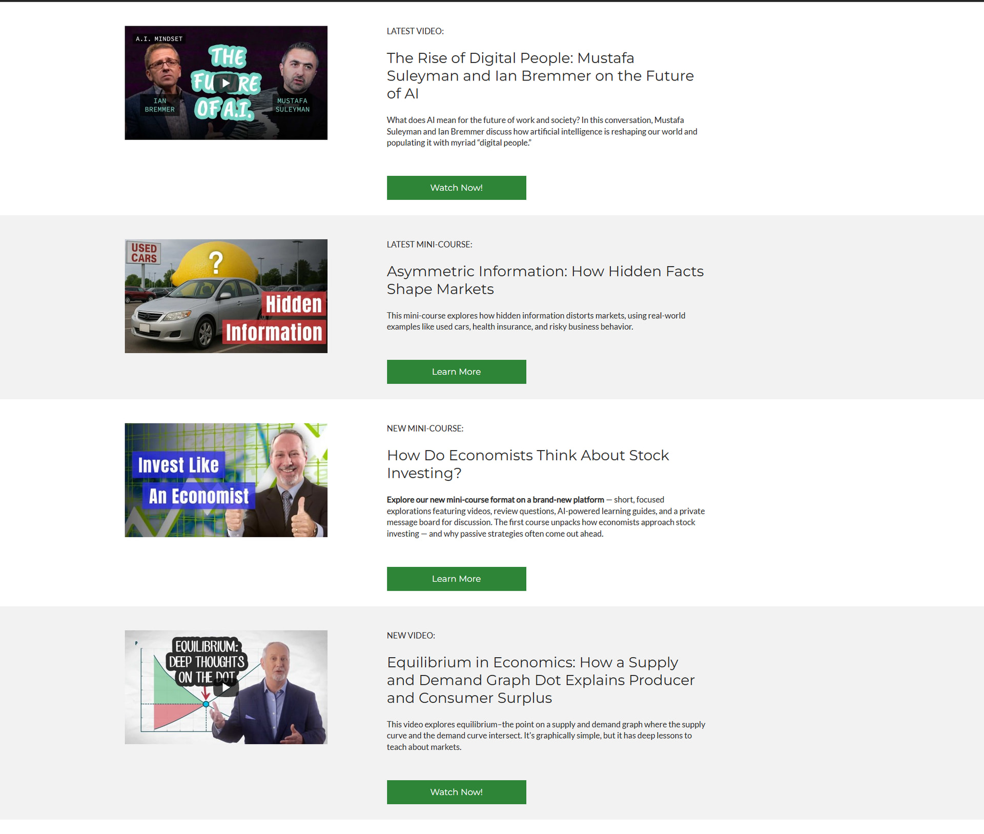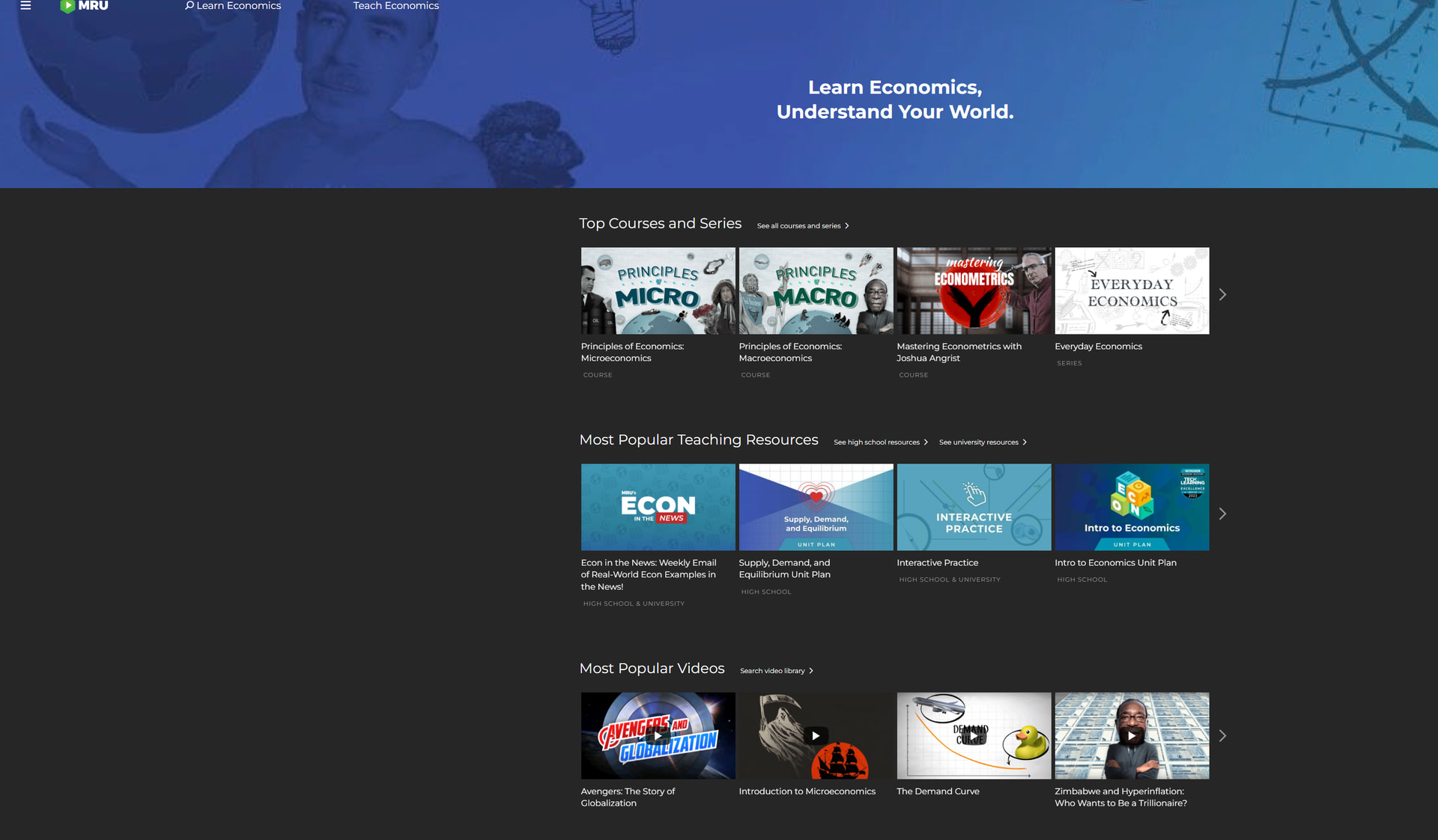 What it is: Entire platform dedicated to economics — micro, macro, development, policy.