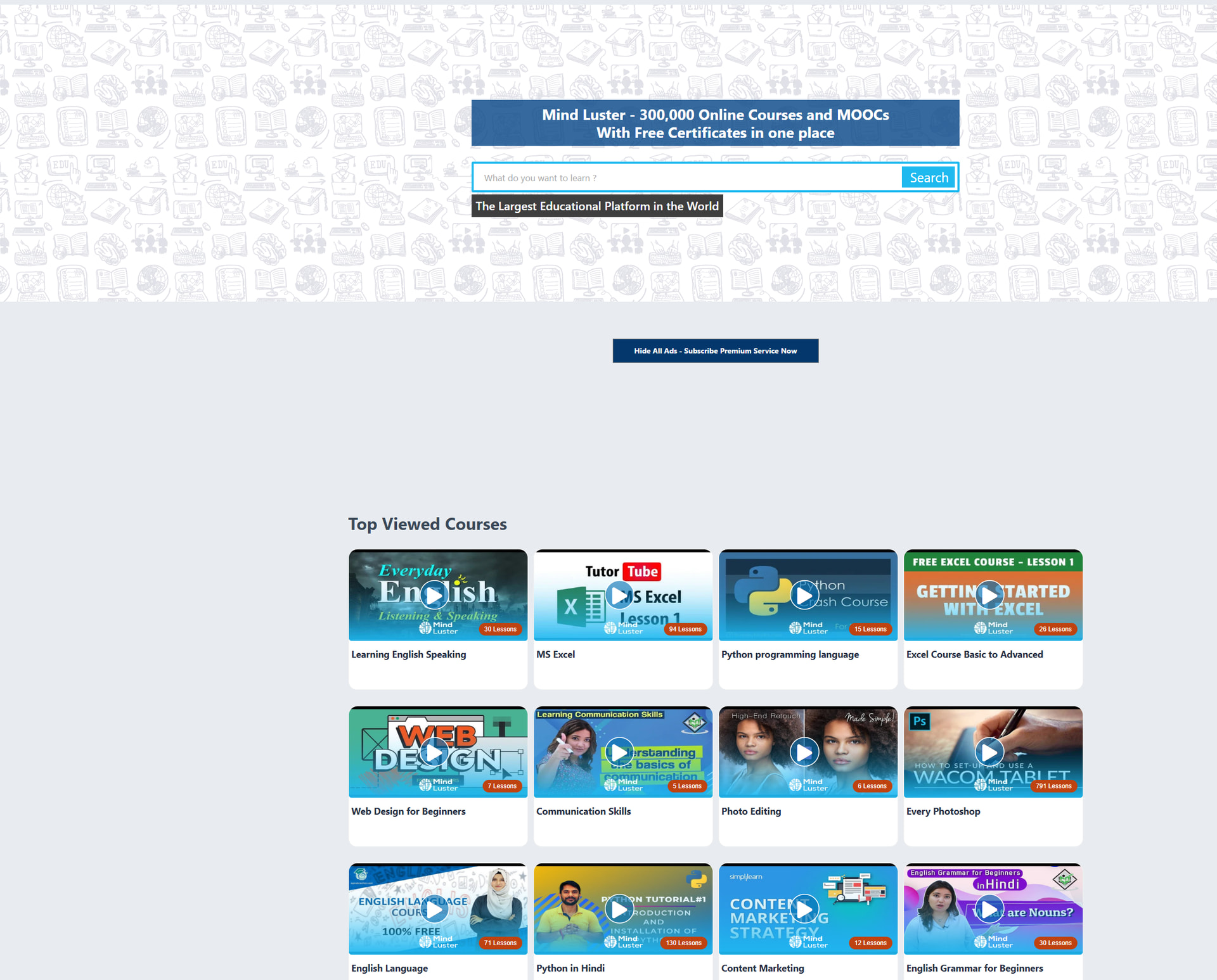 What it is: 150 courses + webinar recordings with Indian government-recognized certificates. Taught in English and Hindi.