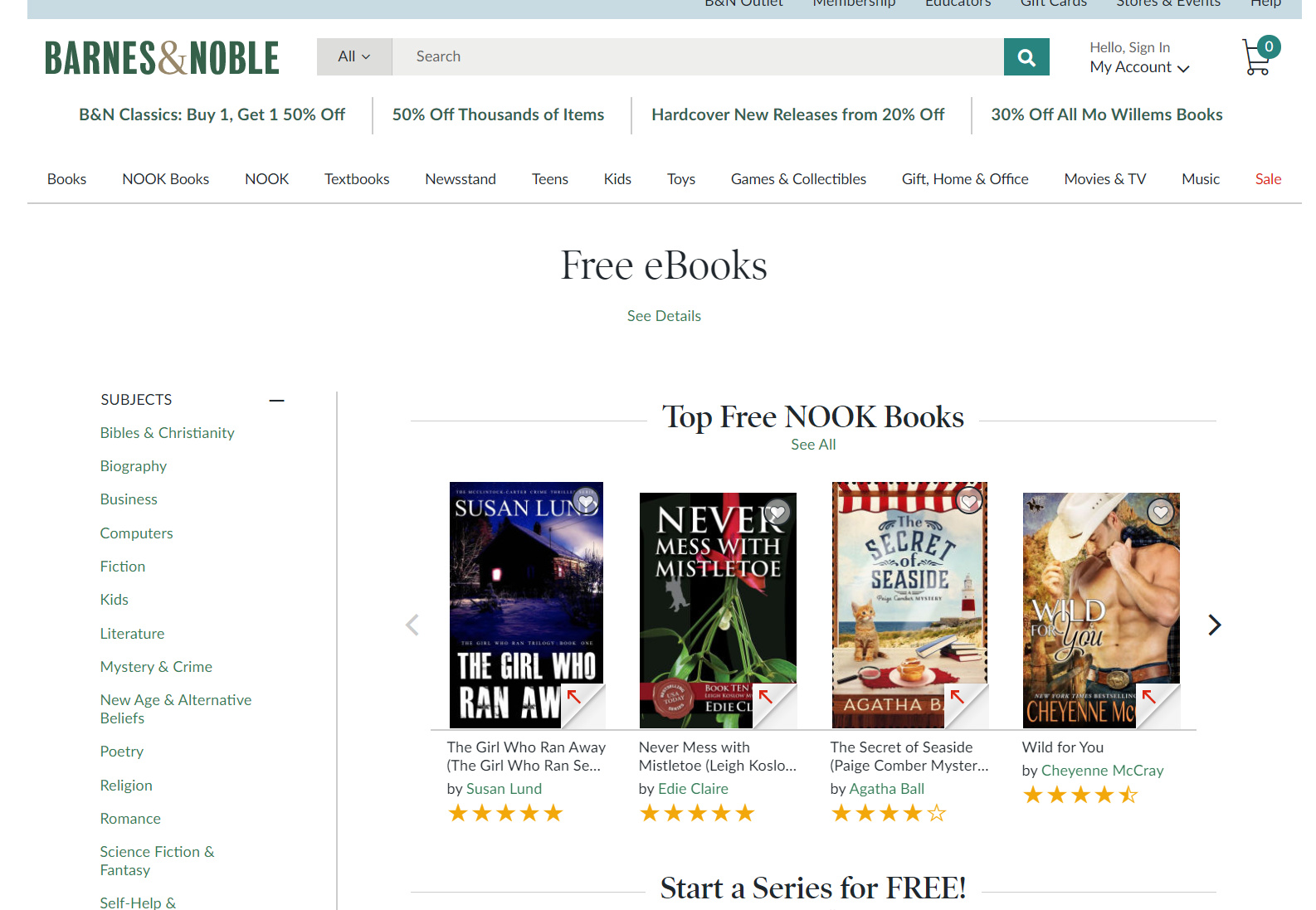 The official site is always our first choice when searching for free resources. And in fact B&N does really like running different catalog or promotions irregularly or regularly to provide free contents. They are: