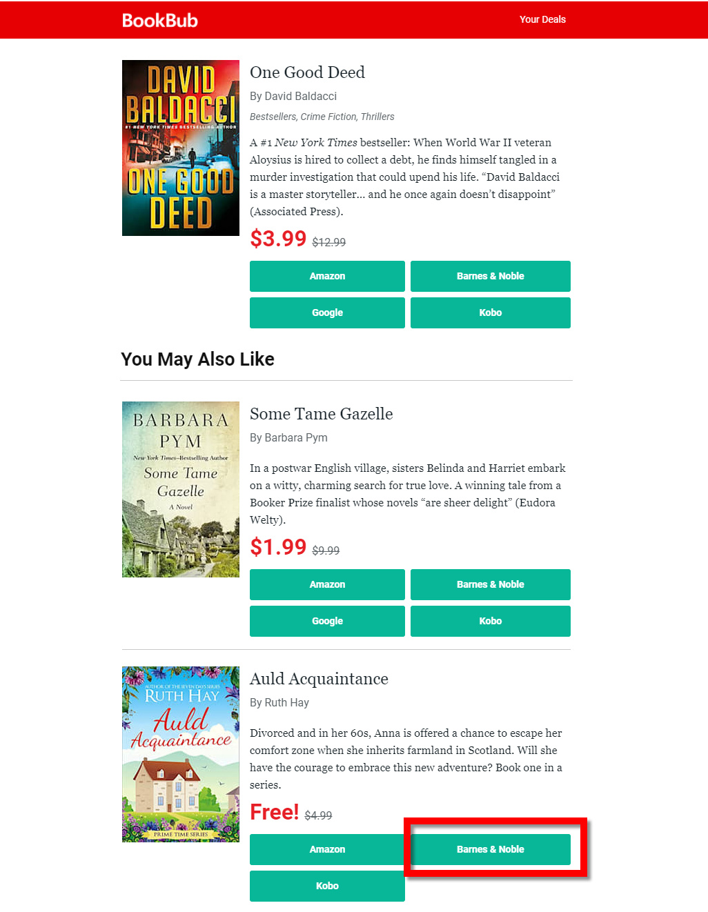Compared to above sites, Bookbub provides direct selection of one book downloading. And books at Bookbub are free eBooks or big discounted best sellers.