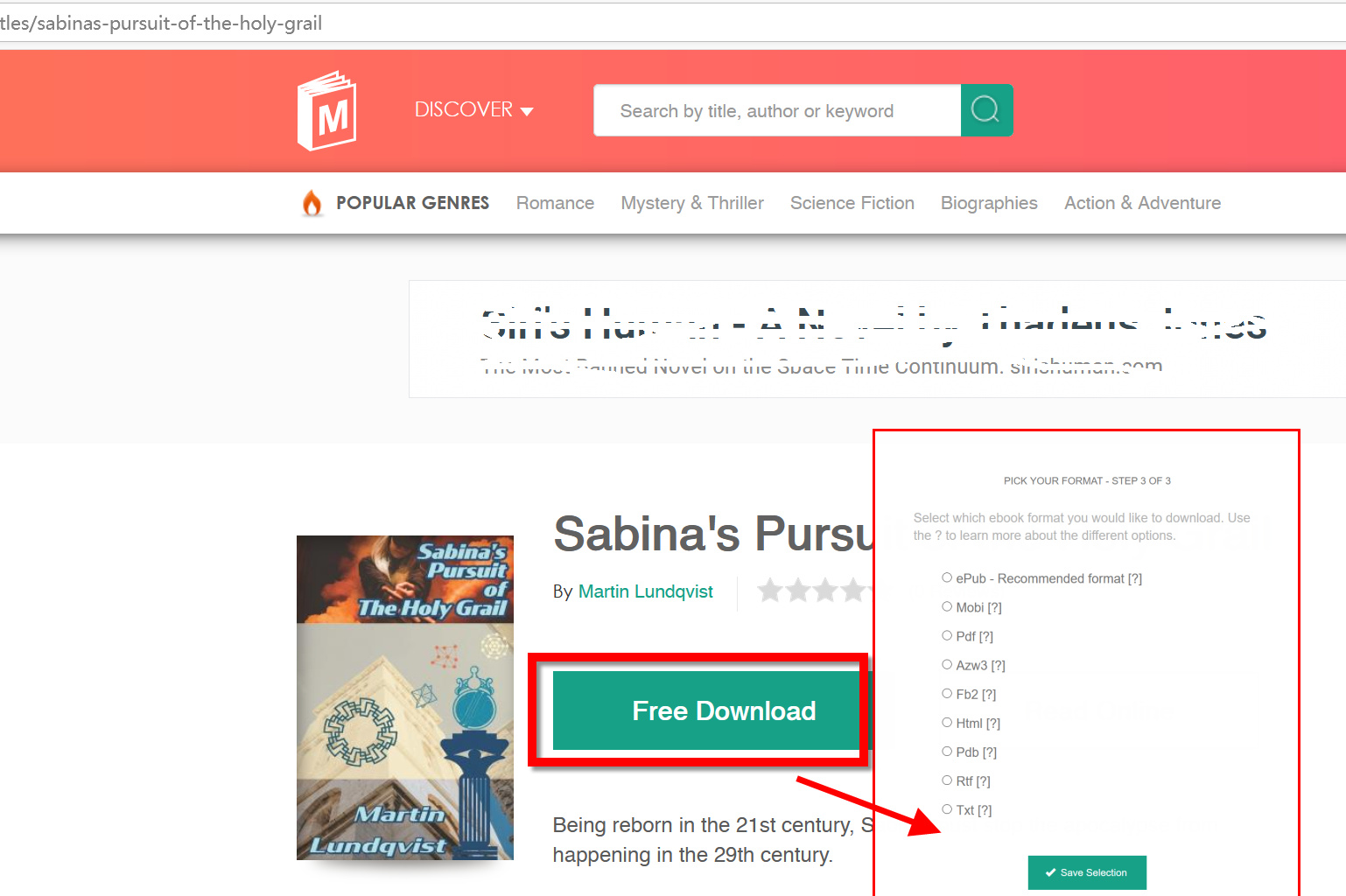 When you searched one book, click on “Free Download” button, then you will be shown a pop-up window which lets you select the downloading format. Here I will recommend you choose ePub or PDF.