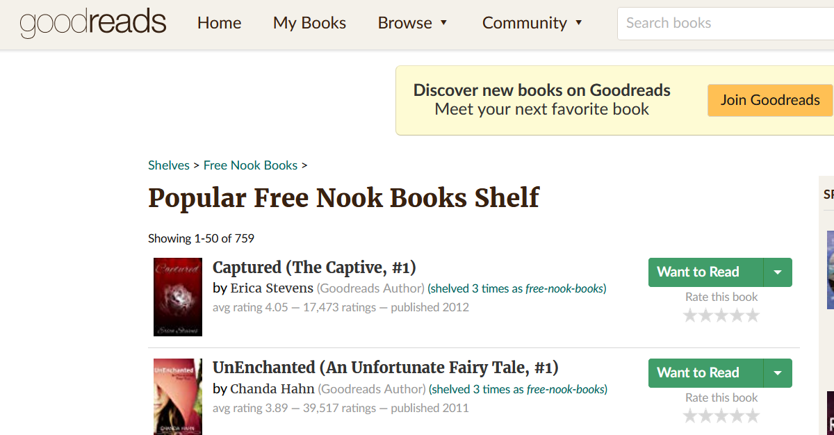 Good Reads has a section called Free Nook Books (“popular free Nook Book Shelf”). Among them we can choose any one free to read, and what’s better, those books are even those high rating contents (avg rating 2.5 ~5).
