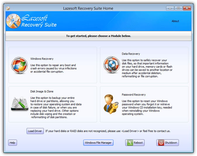 - Lazesoft Recovery Suite Home Edition
