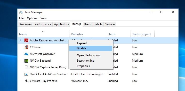 - Simply right-click on the application and select disable, Do the same with all startup applications.
