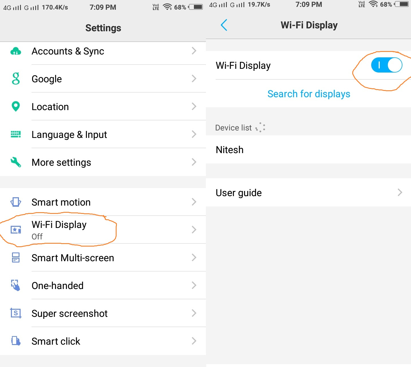 - Now open your android setting and go to wifi display (in some devices name could be Cast ) and enable it.
