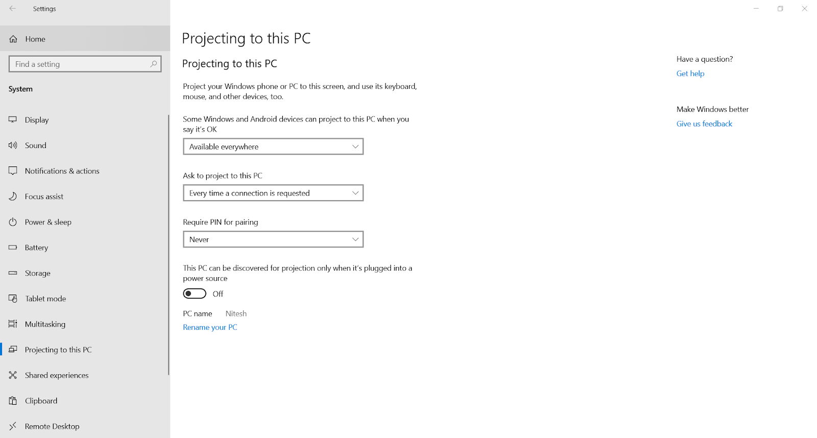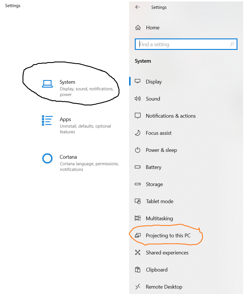 - First of all, open your pc and go to settings>>System>>Projecting to this PC