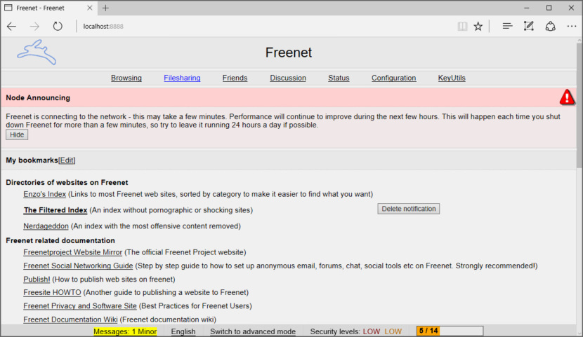 Users contribute to the network by giving bandwidth and a portion of their hard drive (called the “data store”) for storing files. Files are automatically kept or deleted depending on how popular they are, with the least popular being discarded to make way for newer or more popular content. Files are encrypted, so generally the user cannot easily discover what is in his datastore, and hopefully can’t be held accountable for it. Chat forums, websites, and search functionality are all built on top of this distributed data store.