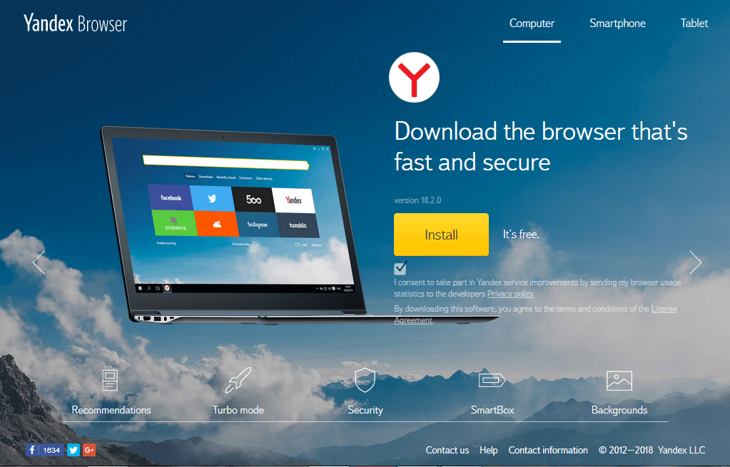 One of the most talked-about and currently, unique features in Yandex Browser is DNSCrypt which sends to and receives encrypted requests from a DNS server. The Tableau is a fancy name for a start or new tab page but is nicely done with a default full window animated background, optional personal news feed and a speed dial of your favorite websites. Although the website doesn’t specifically say, the Protect security system supposedly scans downloaded files with Kaspersky. On install, you will be offered the choice of Google, Bing or Yandex.ru as the default search engine.