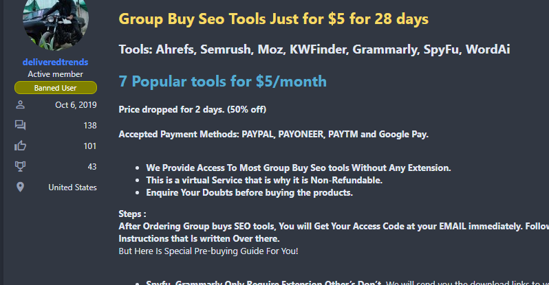 After Ordering Group buys SEO tools, You will Get Your Access Code at your EMAIL or on your PM immediately. Follow The Instructions that Is written Over there.