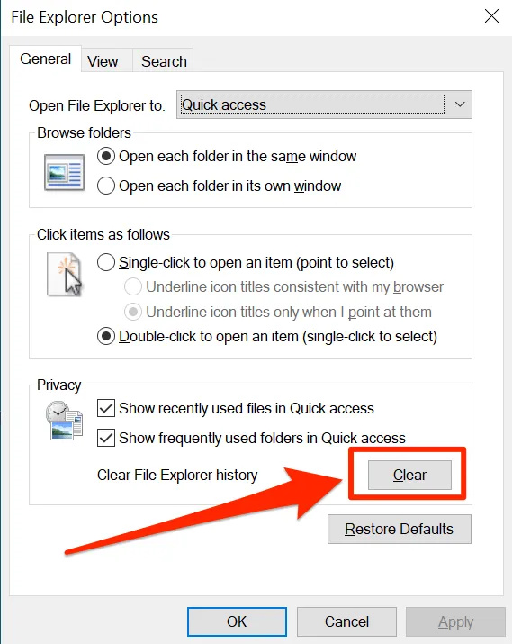 Just like your web browsers and other apps, Windows Explorer also keeps a history of the activities that have taken place in it. If it’s been a really long time since you’re using the Explorer and haven’t really cleared the history, the files may have accumulated in a large number and they may be causing the utility to crash.