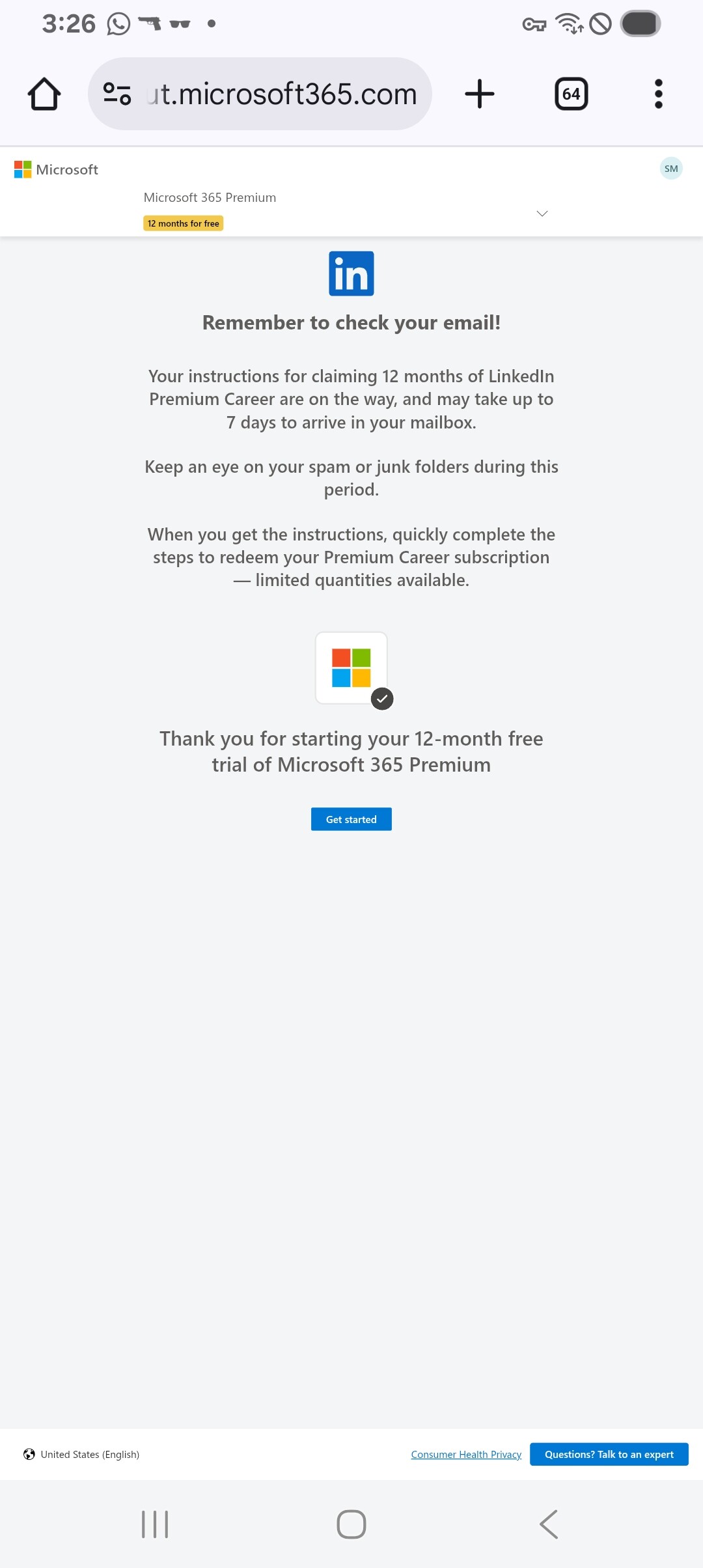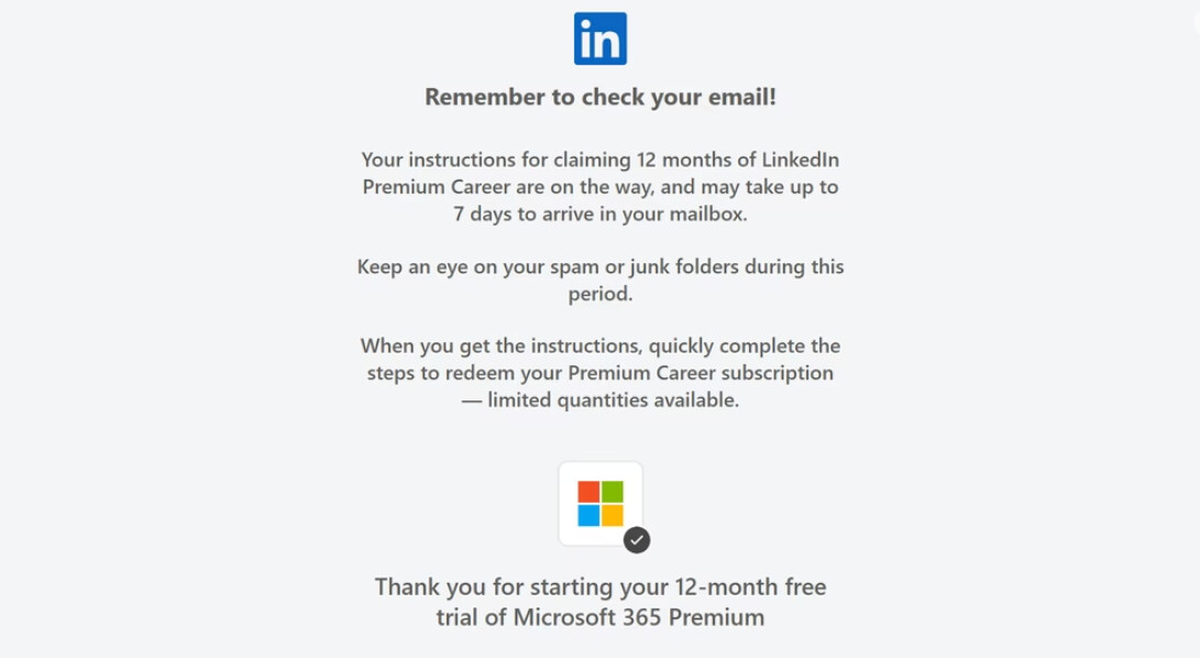 Thank You! Got Instant access to Microsoft 365, waiting for LinkedIn Premium.