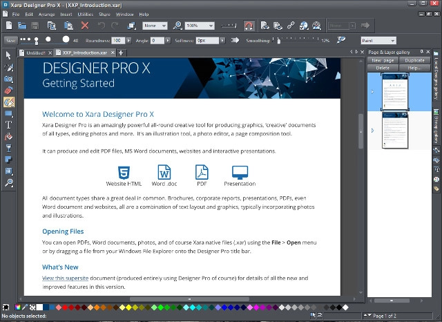 Xara Designer Pro is one of the most comprehensive solutions for graphics design. Other than basic support for vector design, it has tools for illustrations, web design, photo editing and more. Some of the advanced features include Live Effects, non-destructive photo handling, vector masking, layer blending, website creation tools , and support for PDF and PSD file formats.