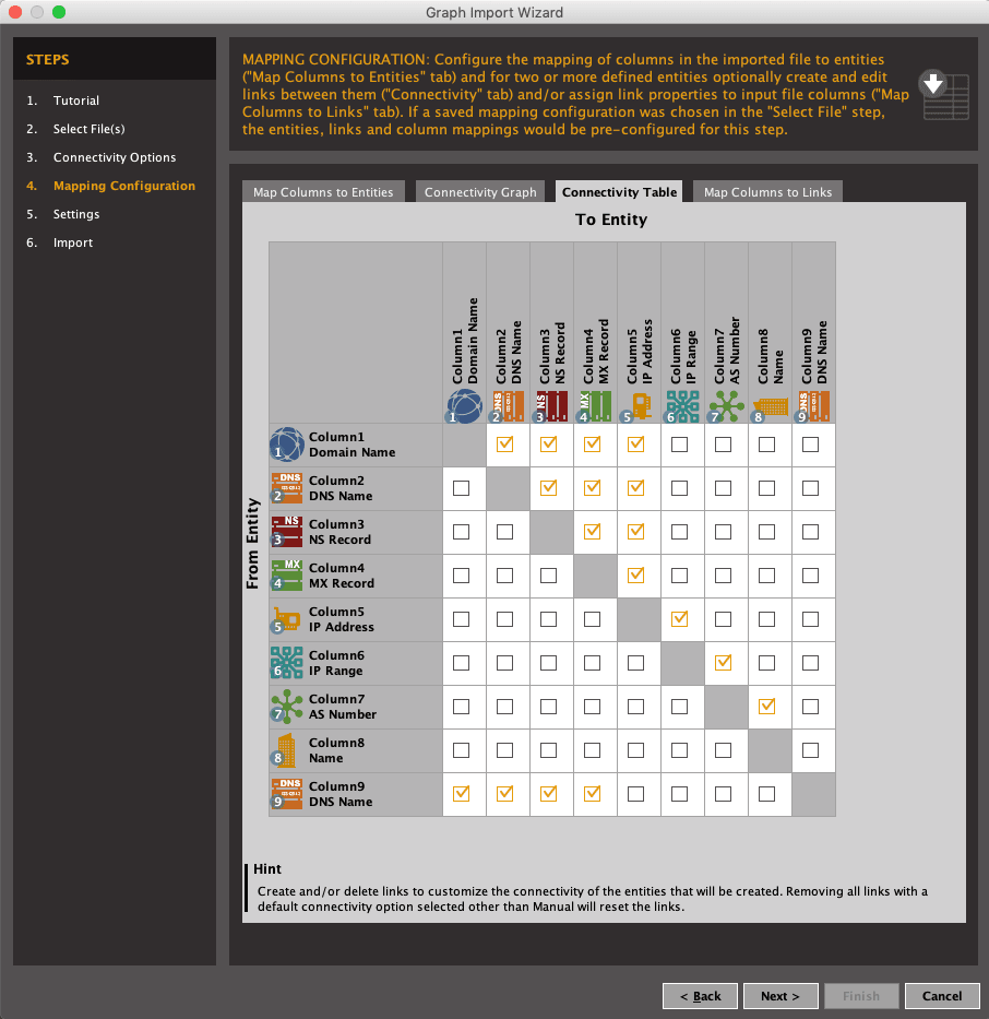 Import the CSV file with the correct Connectivity Table settings:
