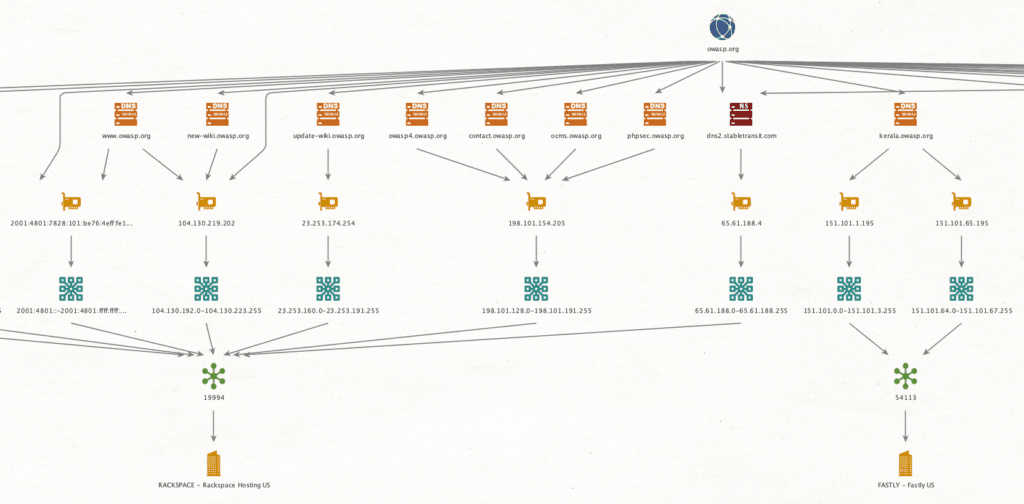 When the enumeration is complete, an Amass tool is capable of converting the results into several different formats accepted by popular network graph visualization engines. This aids analysts and infosec experts attempting to quickly identify network layout and external networks being utilized by the target organization.