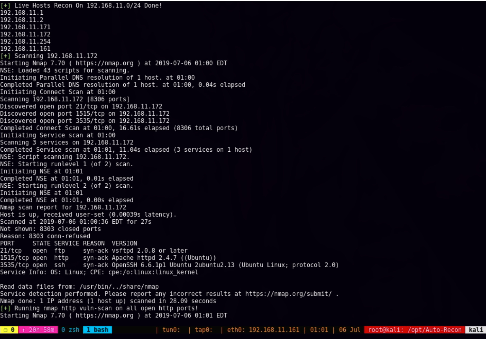 Autoenum is a recon tool which performs automatic enumeration of services discovered. I built this to save some time during CTFs and pen testing environments (i.e. HTB, VulnHub, OSCP) and draws a bit from a number of existing tools including AutoRecon (https://github.com/Tib3rius/AutoRecon), Auto-Recon (https://github.com/Knowledge-Wisdom-Understanding/Auto-Recon), and nmapautomator (https://github.com/21y4d/nmapAutomator). Could also be used in a real-life pentesting engagment. Currently has only been tested in kali. If you notice a bug or have a feature request not in to-do, please submit an issue or let know some other way(discord preferred). Thanks and enjoy autoenum!