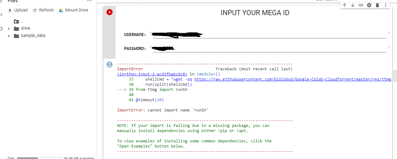 i gave username and password and clicked on Run button, it gives error as shown in picture, how to fix it?