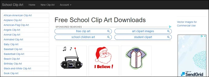 You can use the clipart for non-commercial projects as long as attribution is given. With only 2 ads per page, the site is uncluttered. File types include .jpg and .png.