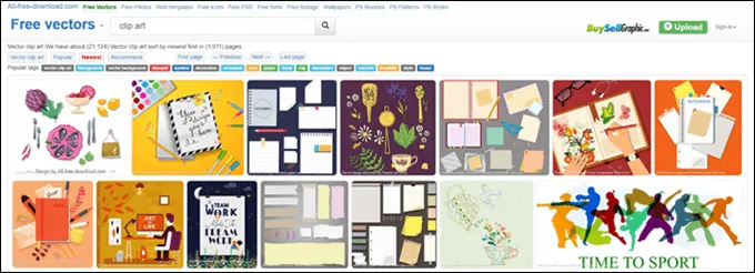 Free Clip Art is very basic. It seems like it’s a curated site of clipart from public domain sources. Usage guidelines aren’t provided though. The quality varies widely as do the file types. Images could be .gif, .jpg, .eps, .ai, or .png. There are 4 ads per page, but they aren’t overbearing.