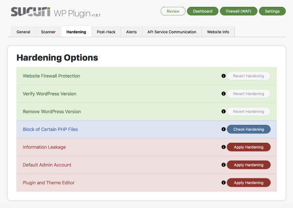 The security hardening provided by Sucuri Security is exceptional. It’s easy to go through and check the status of the different elements of your website to add additional security.