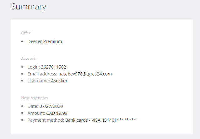 Tried for Deezer and disney+