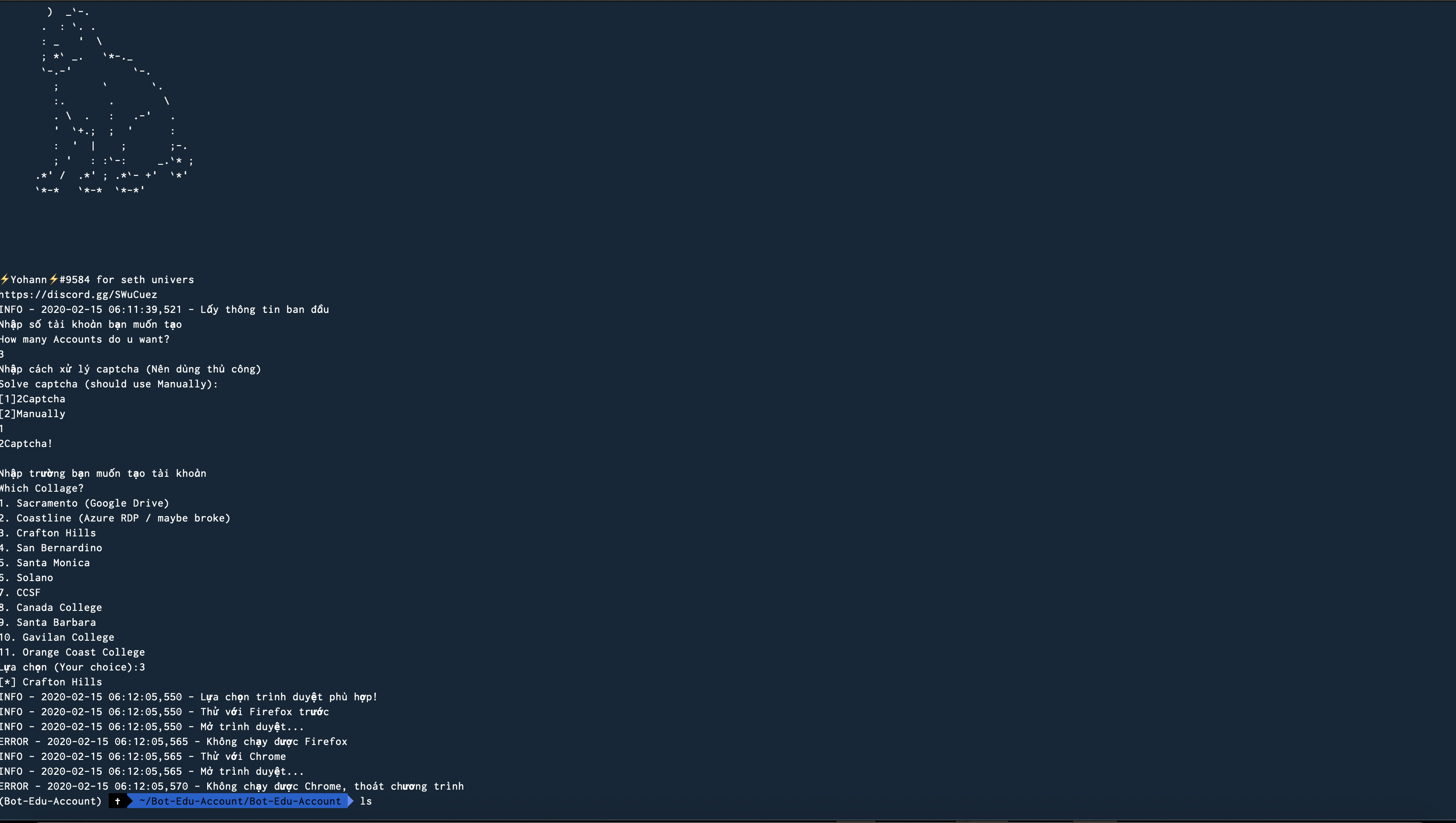 After executing “Edu Bot.py” I entered the amount of accounts and college. Cmd then displayed a bunch of createaccount messages then “Abort trap:6”. An python error message then promoted. Any solution to this? Thanks