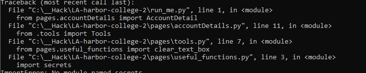 File “C:\Users\dutta\OneDrive\Desktop\LA-harbor-college-2\pages\accountDetails.py”, line 11, in