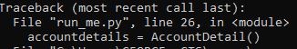 double check your file …accountDetails.py … make sure you have not changed anything on line 17..