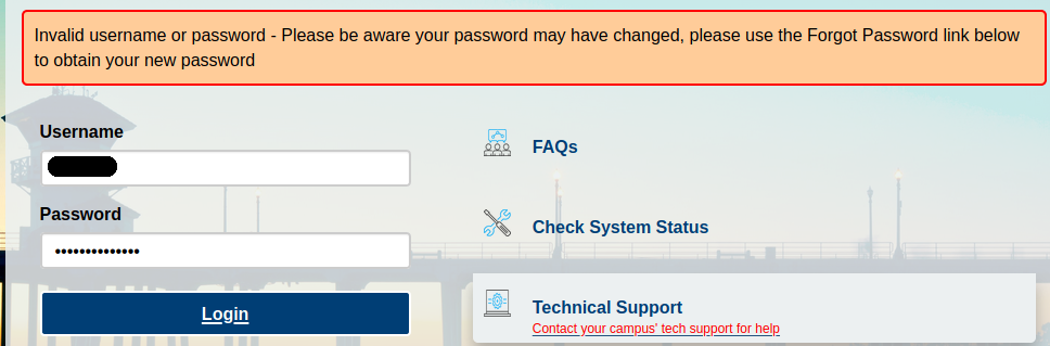 Invalid username or password - Please be aware your password may have changed, please use the Forgot Password link below to obtain your new password