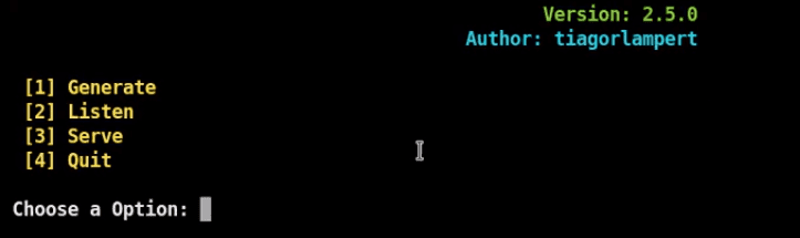We have launched the tool successfully. Now you can see an option called ’ Generate ’ choose that option to generate a payload. Now it will ask you to enter your Local IP address and port. If you want to work it over WAN, put your Static public IP address and forward any unused port. But as this is a tutorial and I’m gonna use it on my own machine, I am using the LAN.