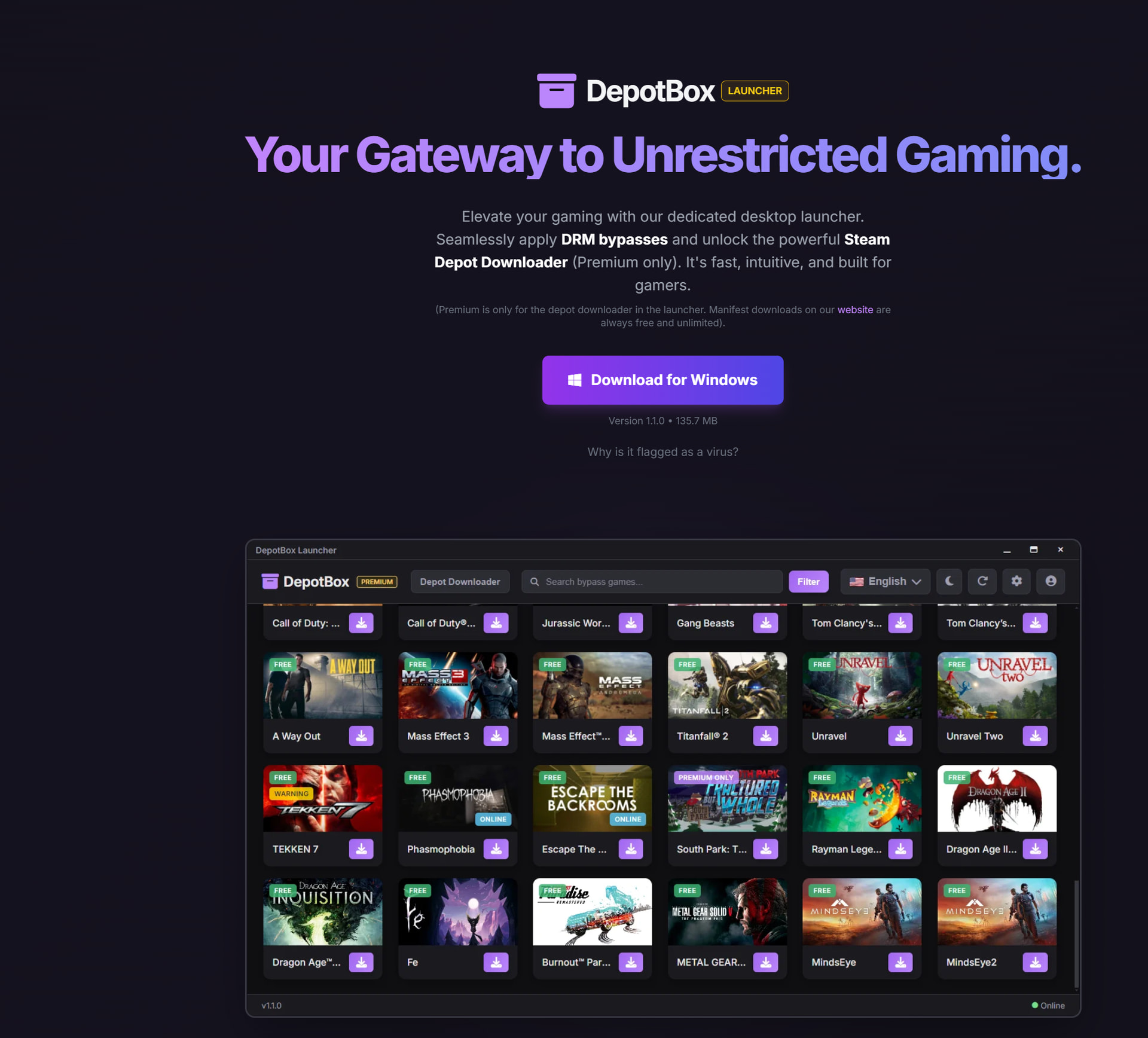 ✓ Bypass protection with DepotBox launcher (no sketchy cracks)
