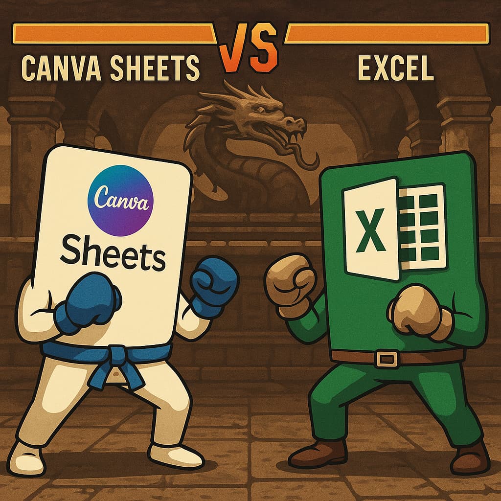• Canva Sheets – You know Excel? This is like that… but with better fonts and no soul-crushing formatting rage.