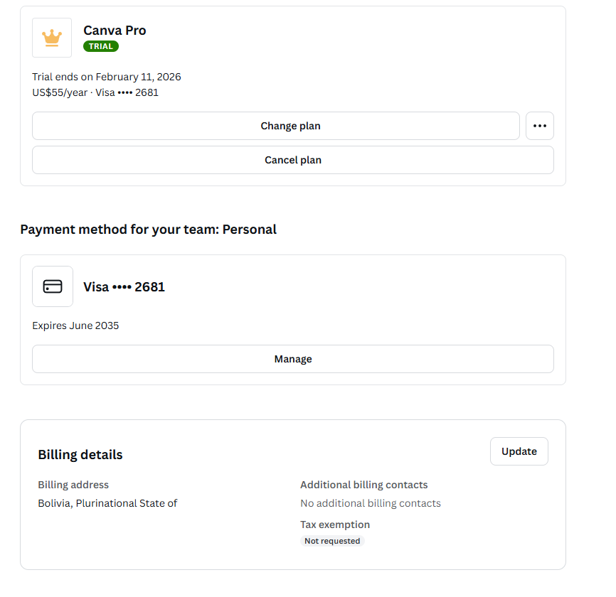 Canvaβs payment verification checks BIN country codes differently based on region. Bolivia has looser fraud detection, so this BIN paired with a Bolivian IP tricks the system into approving without actual charge validation.
