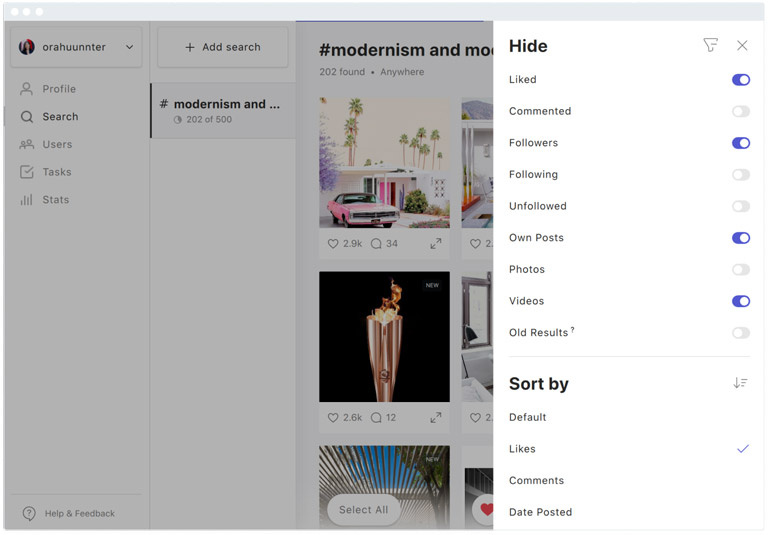 As we mentioned earlier, Combin Growth has one of the most intuitive User Interface designs out there. If someone built the best Instagram app for desktop, it would look like Combin Growth. Once you have signed in using the main account, there is so much to explore. While the Profile section provides you an overview of your Instagram visibility, Search opens up various possibilities.