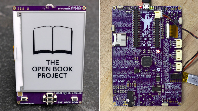 Electronic component distributor Digi-Key will be producing a small manufacturing run of the “open hardware” ereaderfrom the Open Book Project, reports Gizmodo: The raw hardware isn’t as sleek or pretty as devices like the Kindle, but at the same time there’s a certain appeal to the exposed circuit board which features brief descriptions of various components, ports, and connections etched right onto the board itself for those looking to tinker or upgrade the hardware. Users are encouraged to design their own enclosures for the Open Book if they prefer, either through 3D-printed cases made of plastic, or rustic wooden enclosures created using laser cutting machines. With a resolution of just 400x300 pixels on its monochromatic E Ink display, text on the Open Book won’t look as pretty as it does on the Amazon Kindle Oasis which boasts a resolution of 1,680x1,264 pixels, but it should barely sip power from its built-in lithium-polymer rechargeable battery – a key benefit of using electronic paper.