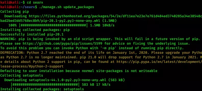 Here we need to install dependencies to run searx. To do this we apply following command: