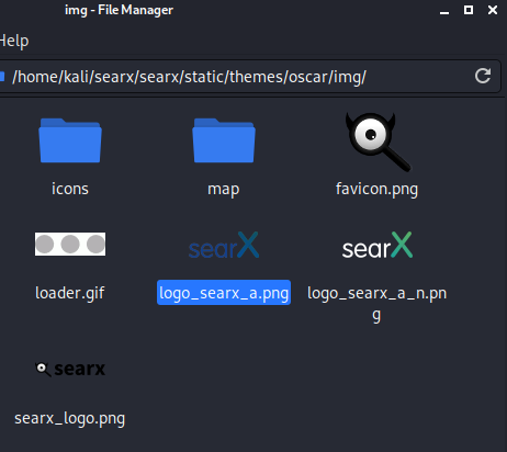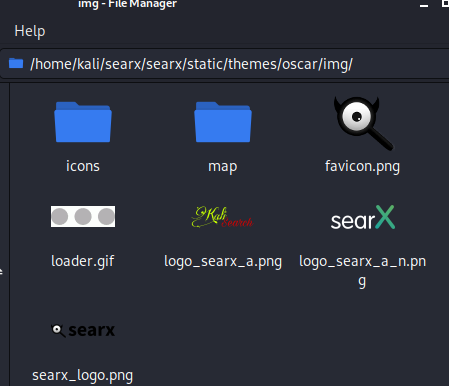 From file manager we need to go to this directory /home/kali/searx/searx/static/themes/oscar/img/ , here we got the icons of Searx search engine. The screenshot is following: