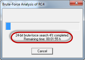 Note: the time taken to complete the Brute-Force Analysis attack depends on the processing capacity of the machine been used and the key length. The longer the key length, the longer it takes to complete the attack.
